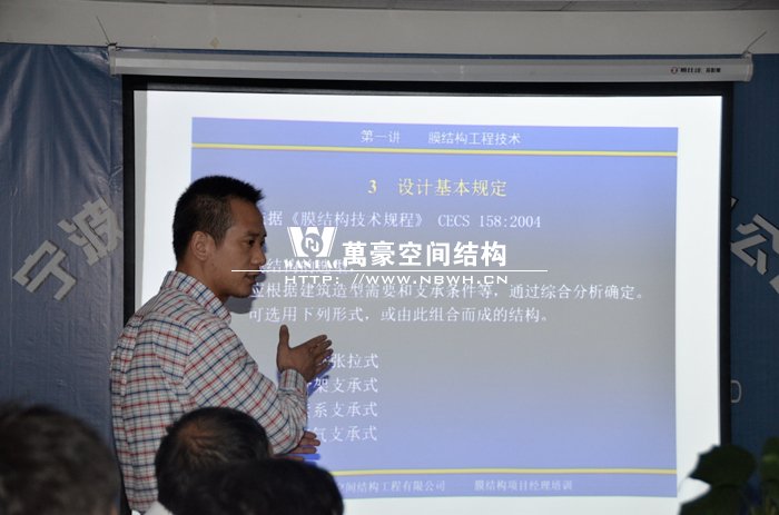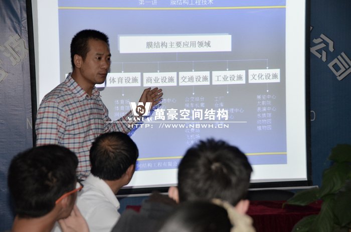 作为膜结构专家张总详细的讲解了膜结构的发展史和膜结构的应用领域,以及膜材的特性等等知识,加深了员工的专业知识。
