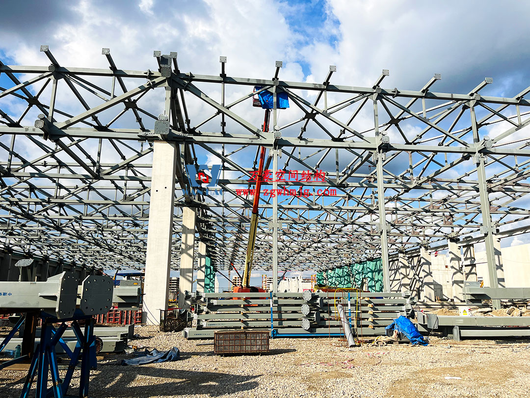 塞尔维亚会展中心位于贝尔格莱德市,二次钢构用量超1200T,ETFE用量超70000㎡,其中单层ETFE索膜40000㎡,双层气囊气枕ETFE超25000㎡,四层气囊气枕ETFE超5000㎡。塞尔维亚贝尔格莱德国际专业展览博览会场,属于2027年世博会主展馆(目前在建)项目,将作为欧洲地区最先进功能最全面世博会展馆之一,膜结构主要分布于室内外:连廊、展厅、行政楼三部分,将每个展馆连接在一起,有效起到了雨天和晴天在各展馆穿插行走遮风避雨功能作用,其中有单层索膜ETFE、双层ETFE气囊气枕、四层ETFE气囊气枕组成;连廊总共有5个大型折叠长条形单体,其中连廊A型共有52个膜单元,连廊B型共有32个膜单元;展厅分为7个单体,共有280个双层气枕单元;行政楼屋面采用四层气囊气枕,共有88个单元,有效解决了当地极寒地区节能保温作用,同时保障了高透光效果;本展馆项目作为塞尔维亚国家一号大型工程将为2027年世博会主会场举办,意义和影响力巨大。