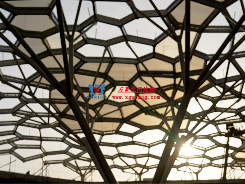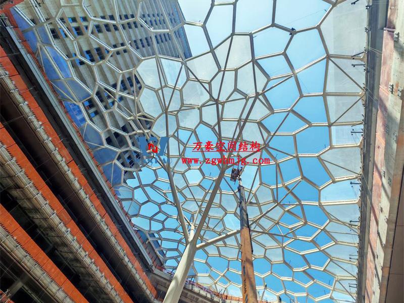 安吉县昌硕小区地块房产开发项目钢结构天幕项目,该项目用钢量约260吨,ETFE膜展开面积约3182平米。