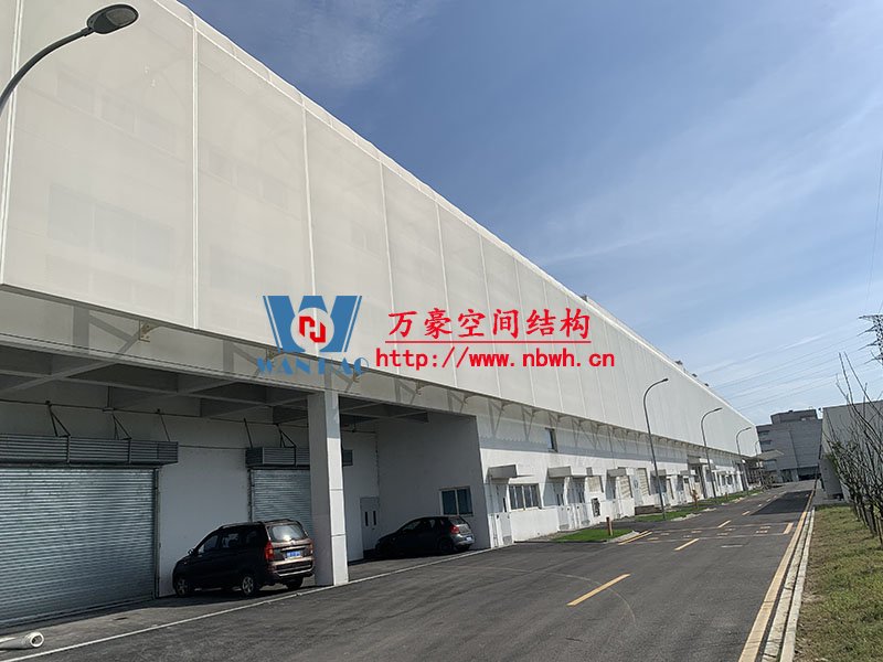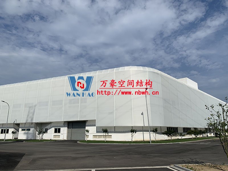 宁波益富乐公司新厂房外立面PTFE网格膜结构项目位于浙江省宁波市奉化区,由万豪空间结构工程有限公司承建。包括立面、顶部弧面的膜结构和钢结构,并根据膜结构行业规范进行结构设计深化、采购、制作实施。
