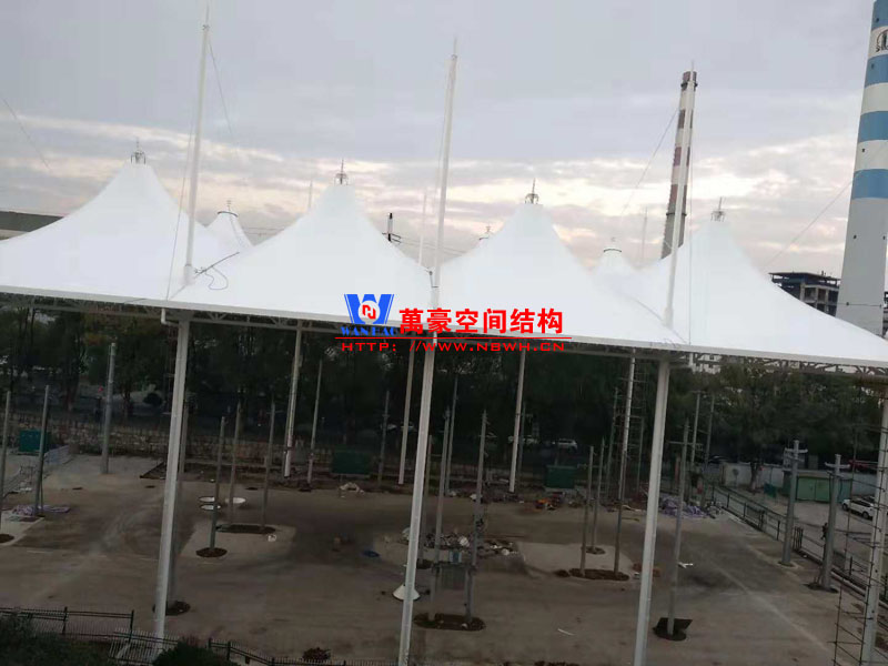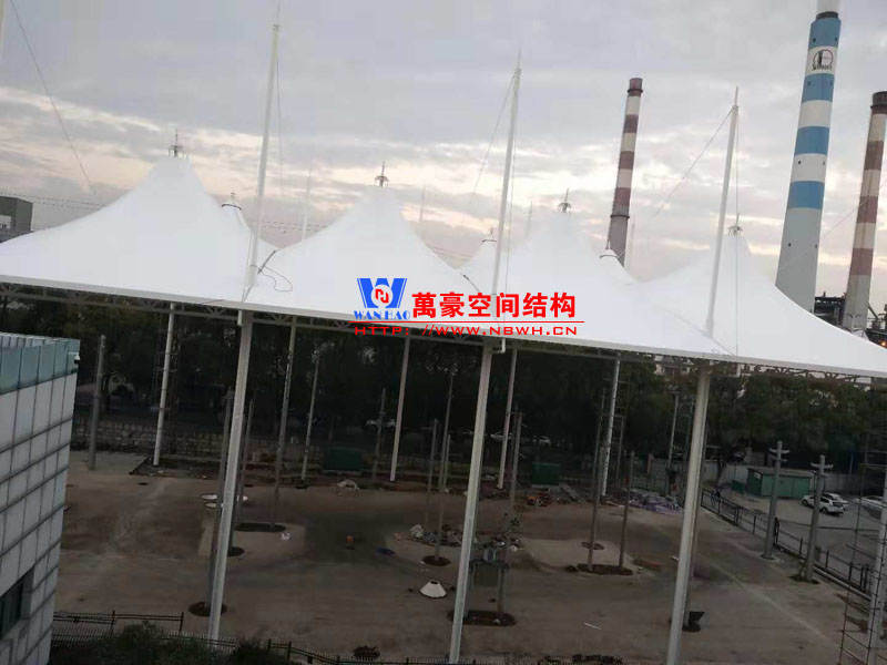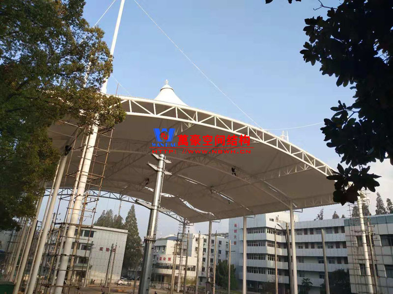 工程位于安徽省安庆市电力培训基地内,该工程用钢量150吨,膜结构展开面积3000平米。