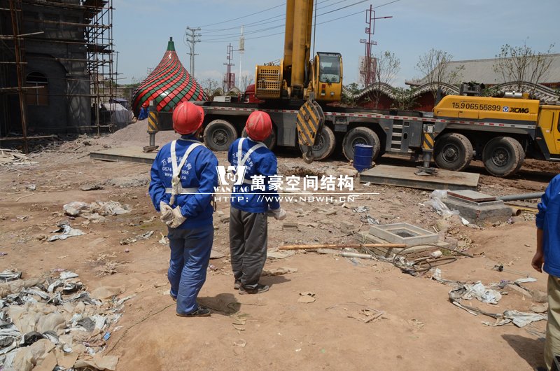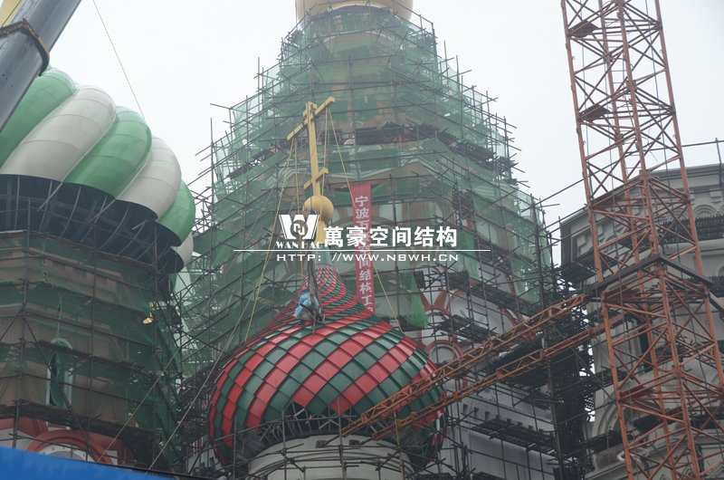 横店俄罗斯馆屋顶钢结构装饰球吊装