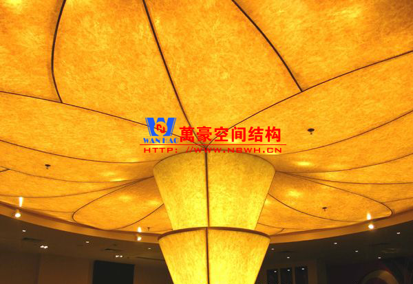 ,简单的说,就是在广大建造的一切和会议厅相关的膜结构建筑。包括在会议厅建筑外顶部制作一个膜结构顶棚和在会议厅内部使用膜结构材料制作成的装饰内顶以及膜结构景观工程等。