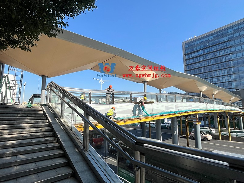 苏州东环路人行天桥ptfe膜结构改造工程位于江苏省苏州市苏州工业园内,该项目PTFE膜结构展开面积2000平米。