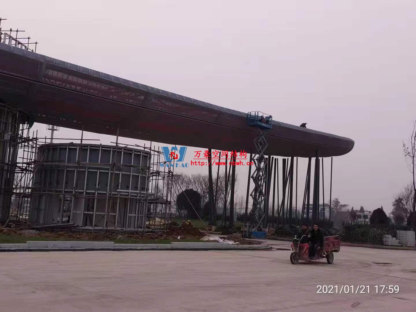 主体采用空间异型复杂钢结构,屋面则是使用