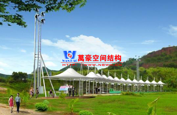 ,主要指的是在浙江地区建造的高尔夫球场膜结构。高尔夫球场膜结构是建造在高尔夫球场内供客户休息乘凉的膜结构遮阳棚。它的形式可以多样化,随场地和业主的需求而制造。总得来说是以张拉膜结构为主,配合场地需求,建造出的一个休息区。以其美观独特的造型,稳定持久的质量,广受大家的喜爱。