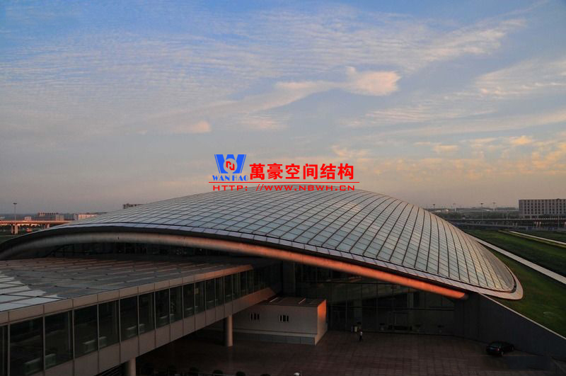 雨棚、PTFE膜结构候车厅以及机场出入口膜结构等。由于机场建筑的特殊属性,采用进口的PTFE膜、ETFE膜运用到这些建筑上,不仅在建筑和结构上交相辉映,在使用上和外观效果上也结合紧密、互相补充。既能适当遮阳,还使膜结构体系的外立面更加丰富、更有层次。