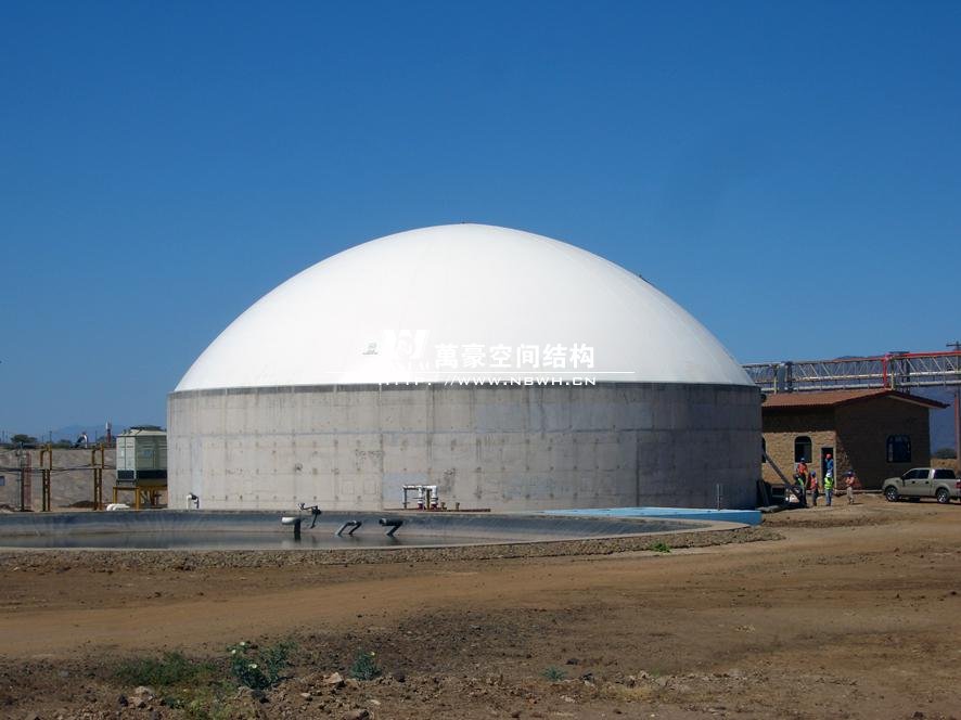 (2)适用于大跨度池体:膜材质轻,抗拉强度高,而且经过特殊光固化处理,对防腐、防菌、防霉变都十分优越,在大跨度的使用上具有优势。