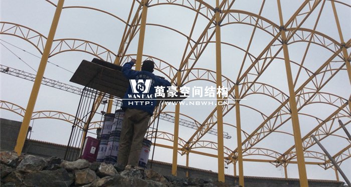 横店影视城膜结构体育场项目,项目近万平米,其中钢结构500多吨,钢结构部分现已接近尾声。感谢现场50多位员工及管理团队,在寒冷的天气中,坚守自己的岗位,兢兢业业,把工作做到了极致,感谢他们的付出!