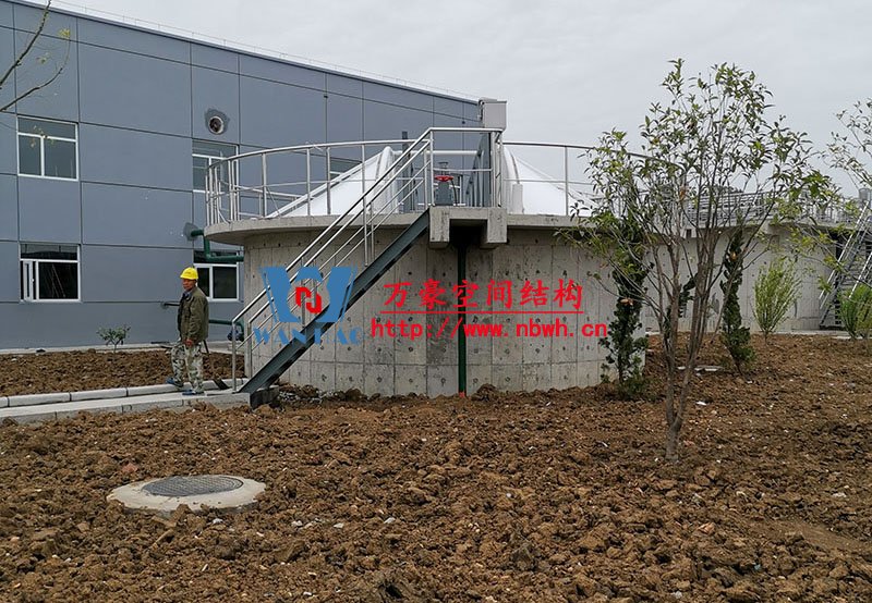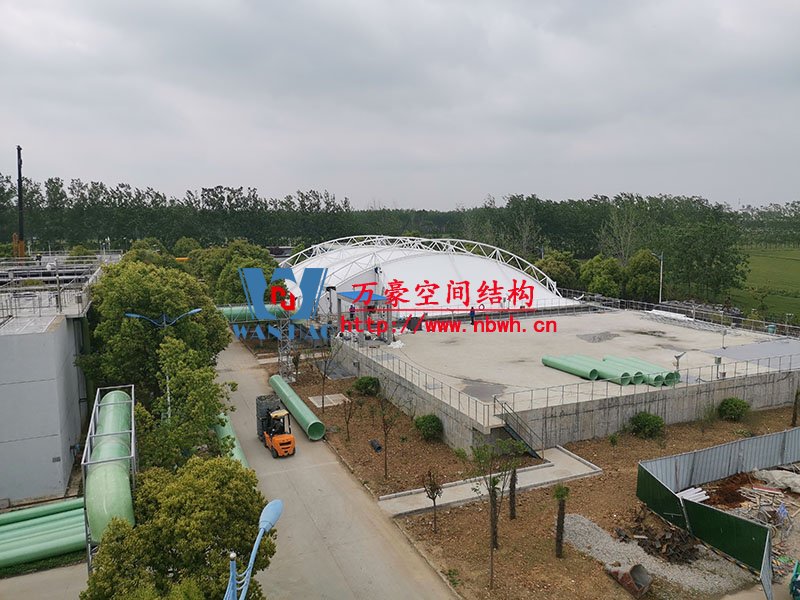 项目位于江苏省淮安市,由宁波万豪空间结构工程有限公司承建。该项目采用碳钢骨架(外侧)+聚酯纤维(反吊)结构形式,造型美观,经济适用。