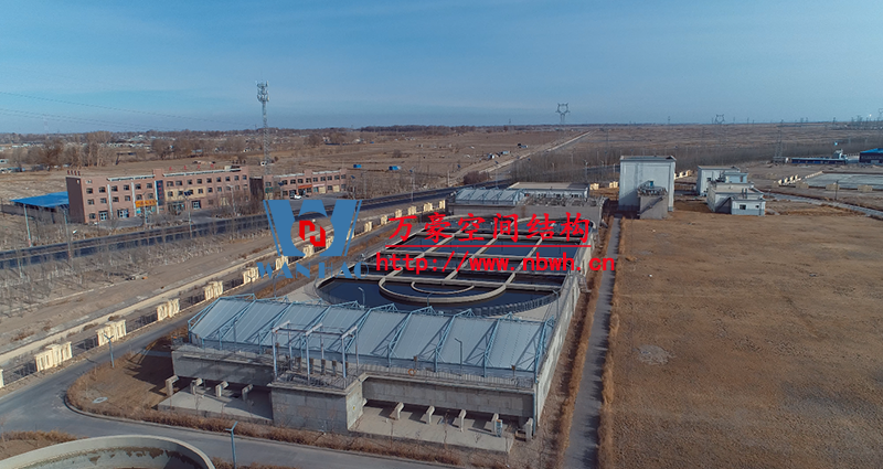 格尔木工业园昆仑工业区工业污水厂污水池膜结构工程位于海西蒙古族藏族自治州格尔木市,此项目是国内首个ETFE膜结构污水池加盖工程。 该工程主要建设格尔木工业园昆仑工业区工业污水处理厂首期2.5万立方米/天工程二沉池、水解酸化池和预沉池池体保温膜结构安装。项目用钢量230吨,膜结构展开面积5000平米。
